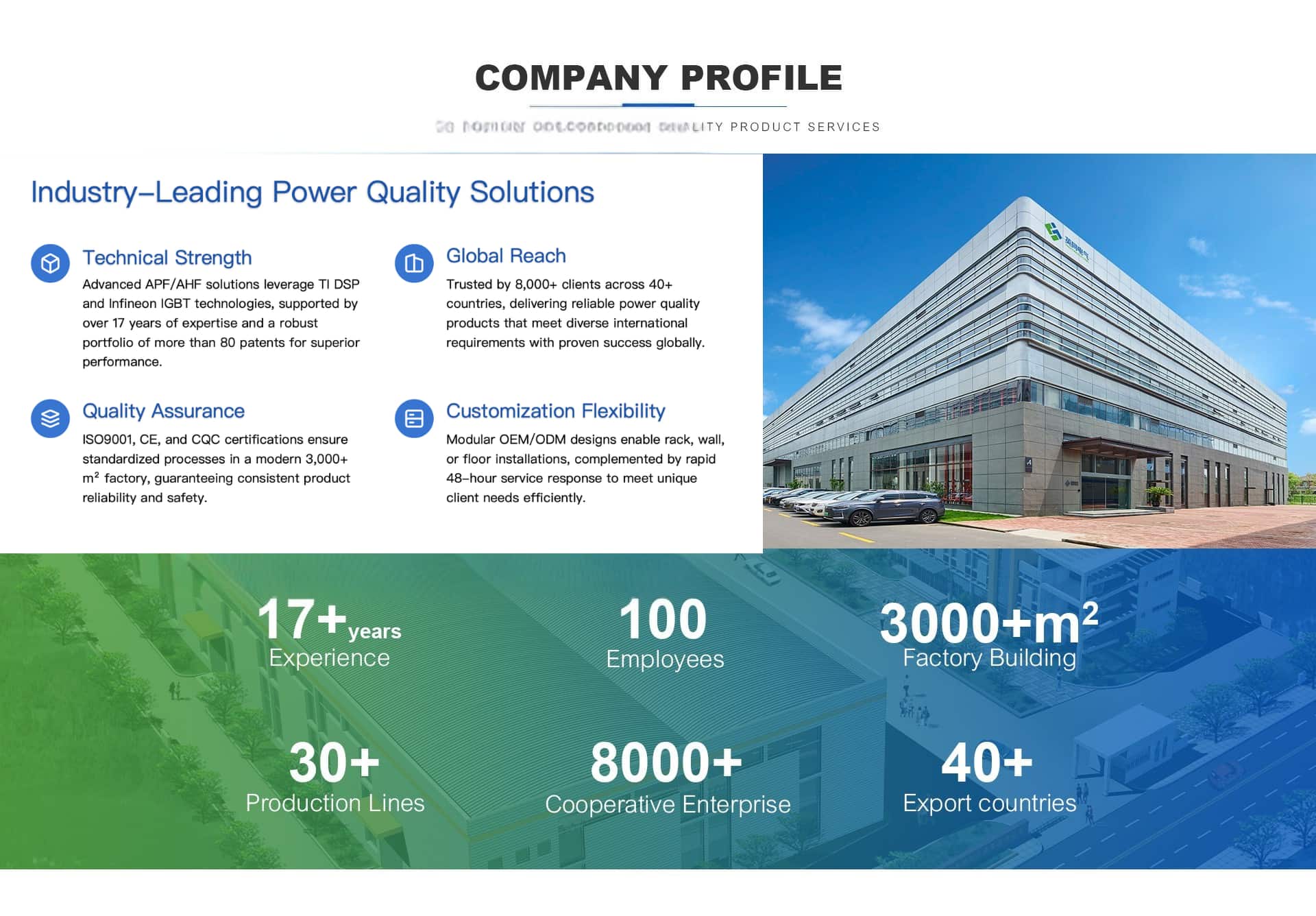 نبذة عن شركة شنغهاي يينغتونغ (YT) للكهرباء تُعد شركة شنغهاي ينغتونغ (YT) للكهرباء المحدودة شركة رائدة في مجال حلول جودة الطاقة، وهي متخصصة في البحث والتطوير والتصنيع لـ مرشحات الطاقة النشطة ، مولدات الطاقة الثابتة ، و أنظمة تخزين الطاقة بفضل خبرتها التي تزيد عن 15 عامًا، تقدم شركة YT Electric حلول طاقة ذكية وفعالة ونظيفة للصناعات في جميع أنحاء العالم، بما في ذلك مراكز البيانات والمستشفيات ومصانع التصنيع.