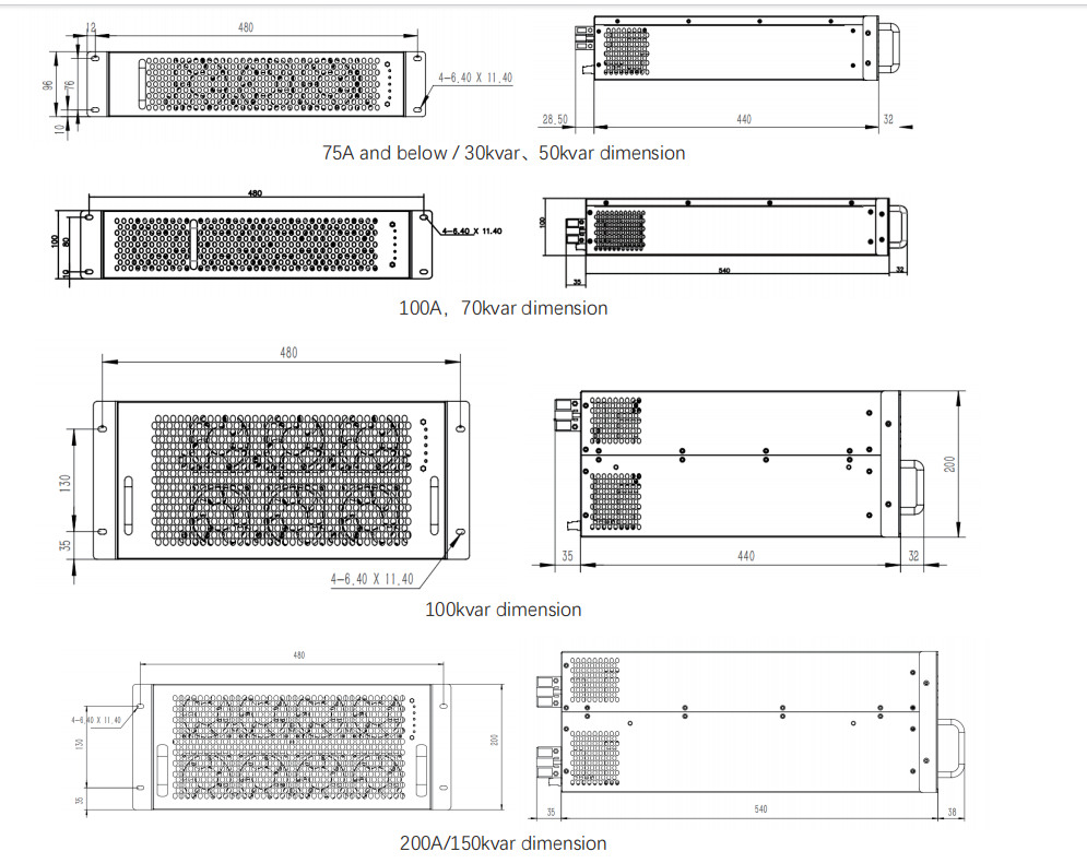 مرشح الطاقة النشطة (SiC) / مولد التباين الثابت (SiC) تغطي السلسلة من 20 أمبير إلى 150 أمبير / 30 كيلو فولت أمبير إلى 150 كيلو فولت أمبير، نوع الحائط الداعم، نوع الرف.